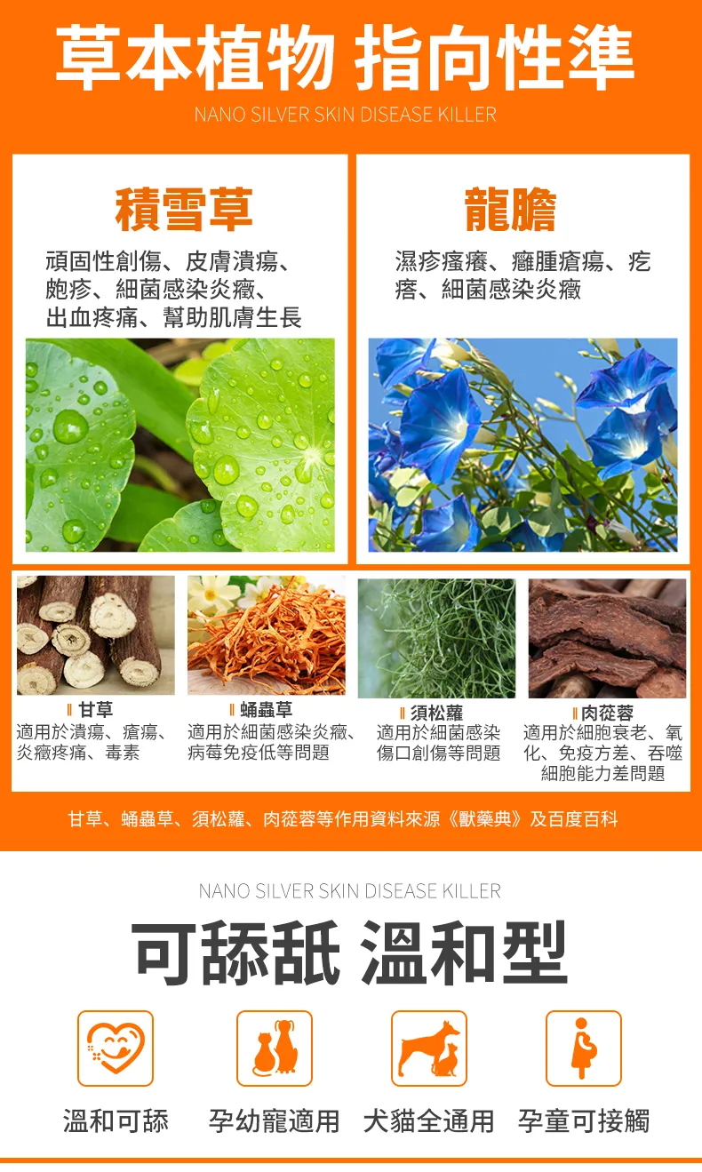 幫助傷口癒合,修復肌肉,止癢,抗菌消炎。