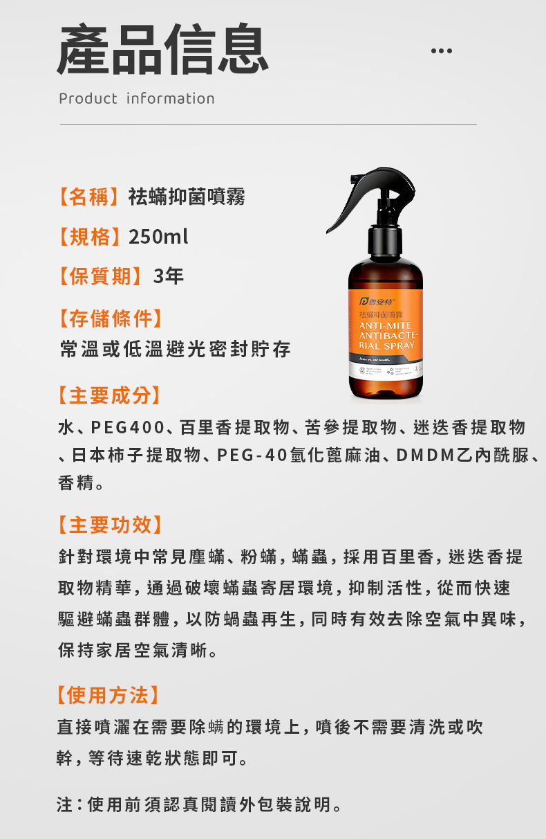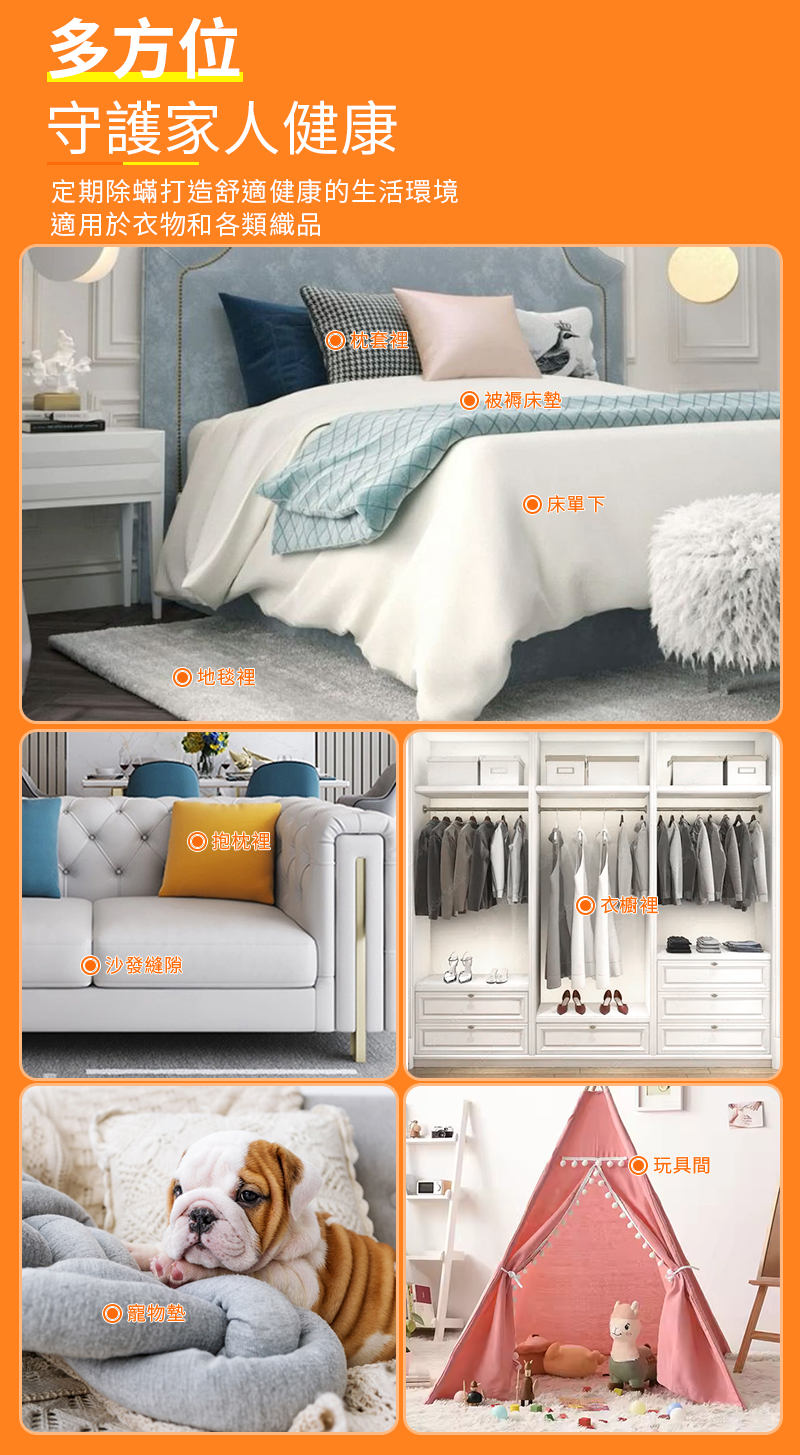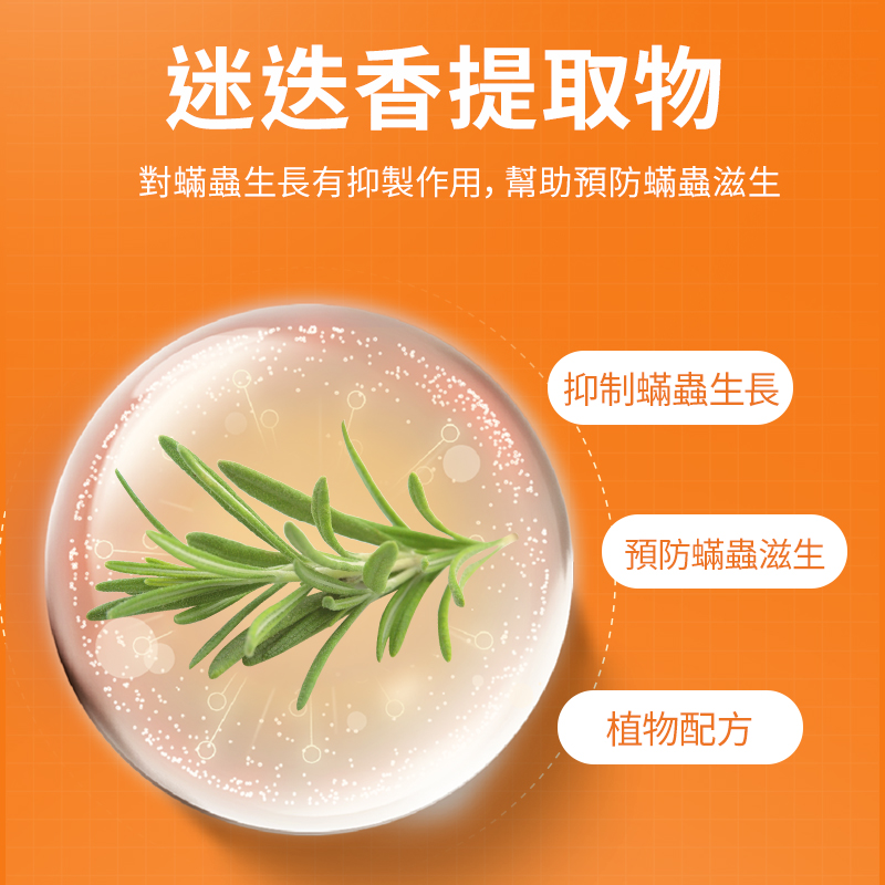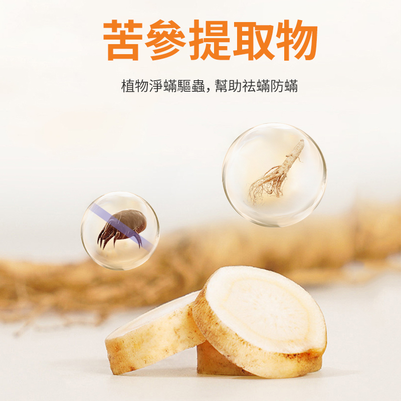 高效祛螨:針對塵螨設計,使用天然植物萃取配方,有效驅除塵螨,讓居家環境更清新