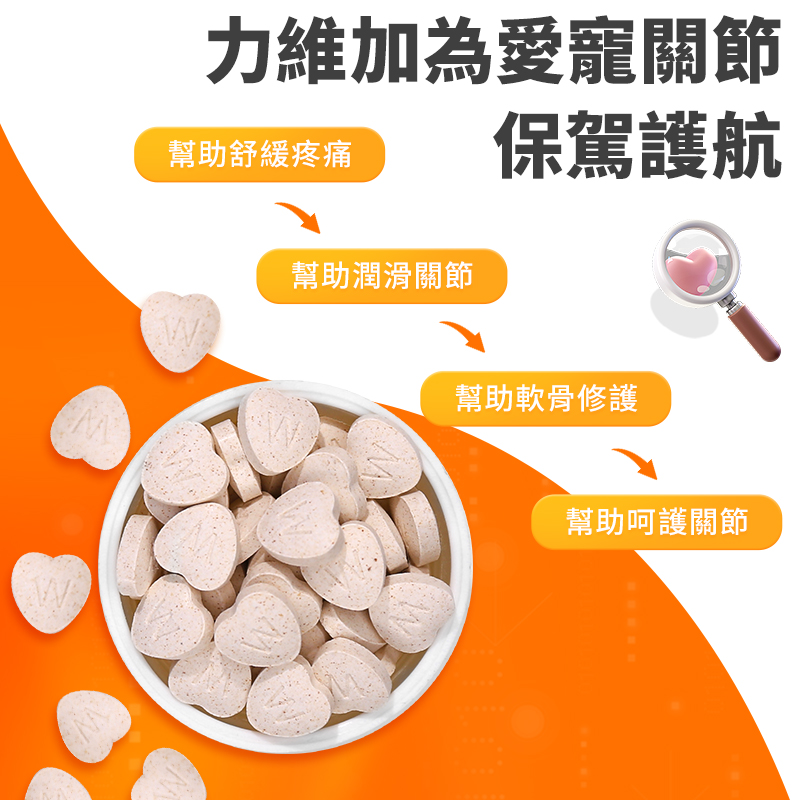 讓毛孩走路不卡卡的獨家配方,添加支持關節健康的四大成份,給毛孩健步如飛的行動力!隨著毛孩子年齡的生長,它們產生的葡萄糖胺減少導致走路卡卡。預防或減緩關節退化從來都不嫌早。