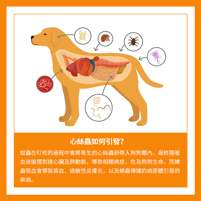 4. 感染心絲蟲-心絲蟲病主要是透過被感染的蚊子傳播的,如果不防蚊,狗狗就很容易感染到心絲蟲病。