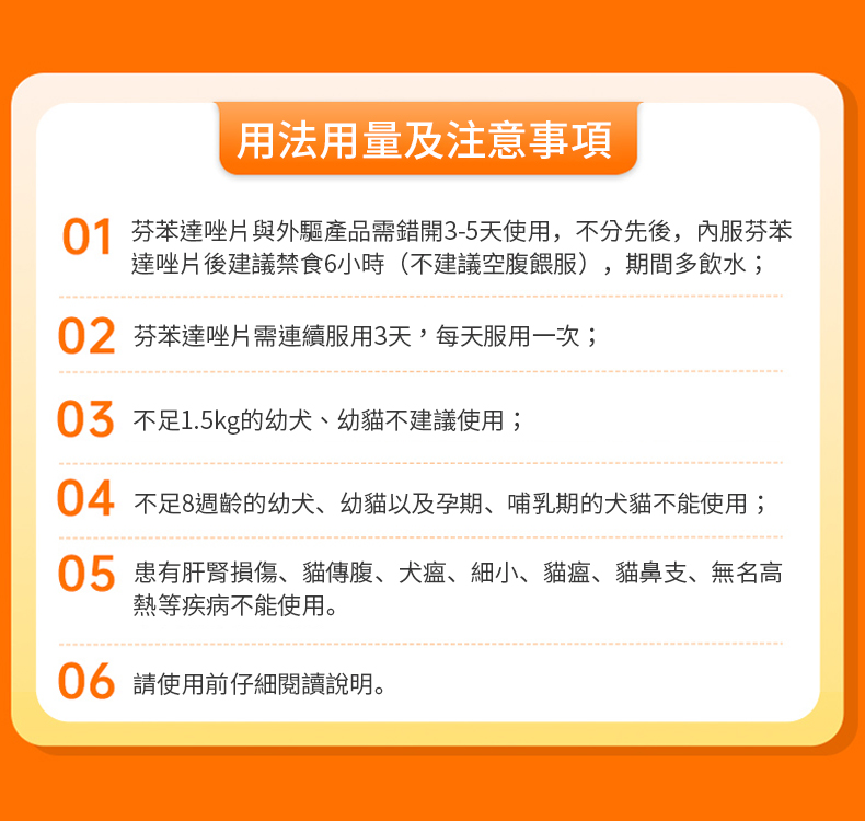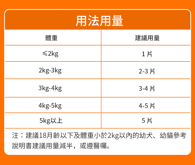 體外驅蟲:每月1次(跳蚤、虱子、蜱蟲)