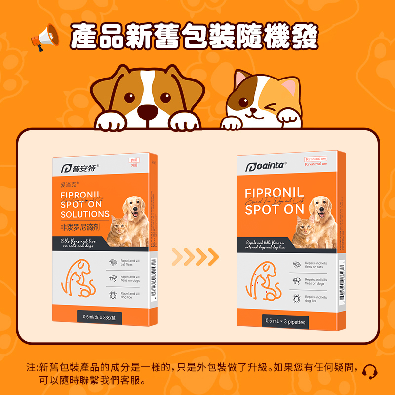 非潑羅尼是局部用藥,全身吸收率低,全身副作用的可能性最低。它可安全用於 8 週以上的幼犬和小貓,是早期治療外部寄生蟲的靈活選擇。阿維菌素不能用於某些品種,如牧羊犬和澳洲牧羊犬,並且可能導致嚴重的神經系統副作用,如顫抖、共濟失調,甚至可能致命。”