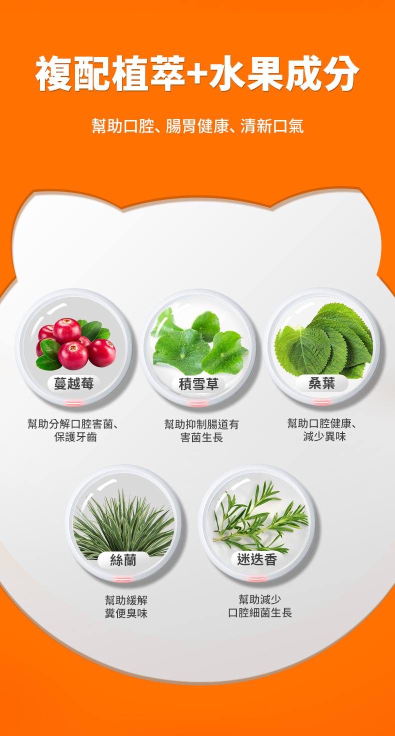 【原料組成】凍雞肉、凍鴨肉、凍雞肝、水解魚蛋白粉、纖維素蛋黄粉、膠原蛋白、蔓越莓粉、積雪草、桑葉、
