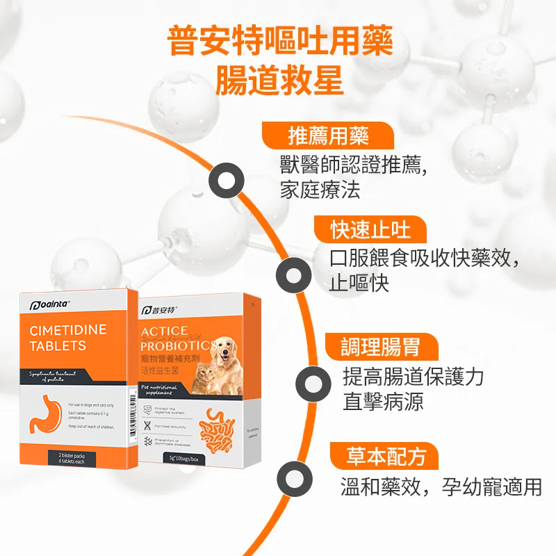 tips:搭配益生菌,有助於減少腸道炎症,調理腸胃,修復腸道損傷,讓愛寵告別嘔吐腹瀉困擾。