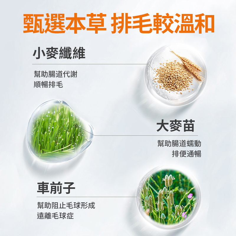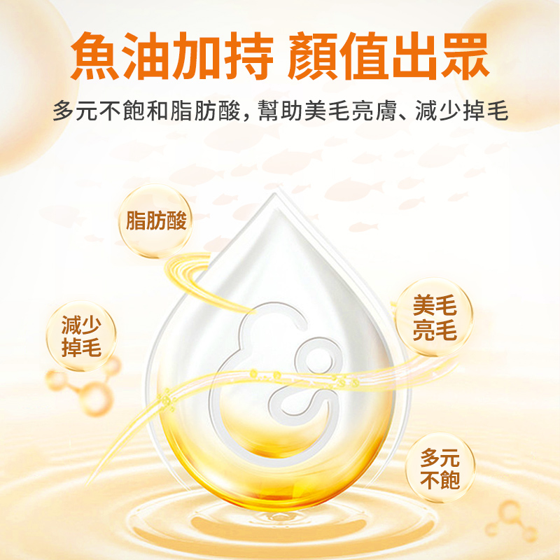 我們加入了魚油,有助於保持皮膚和毛髮健康,並在日常梳理時提供額外的毛球控制效果。