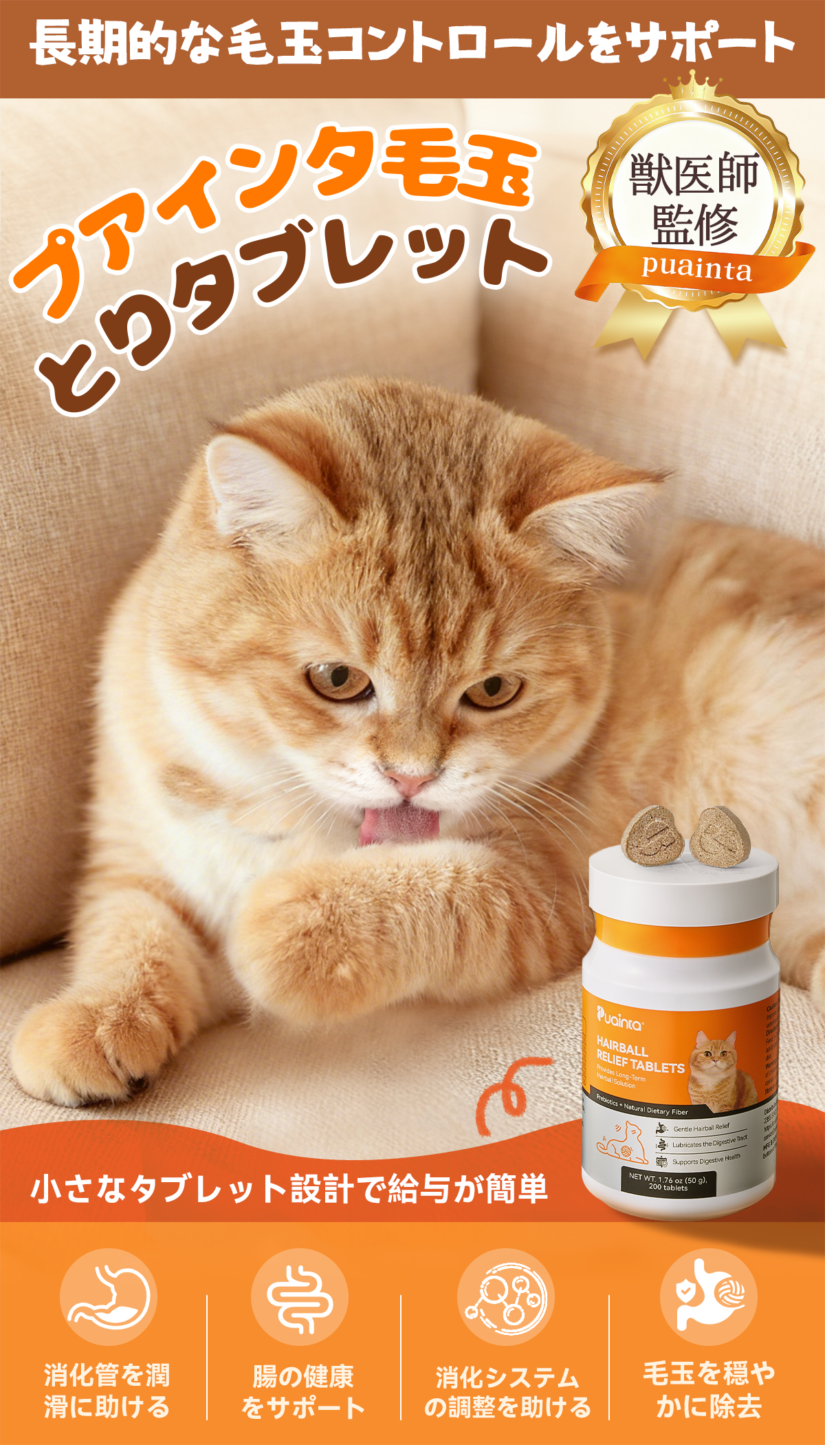 毛玉吐きの心配を減らし、元気で幸せな毎日を愛猫に。 獣医師監修の安心処方で、大切な家族を優しく守ります🐱✨