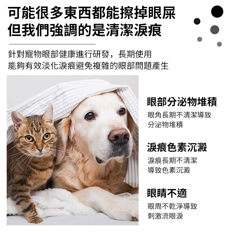 幫助溶解眼睛分泌的化合物,並擦去淚水等有色殘留物。