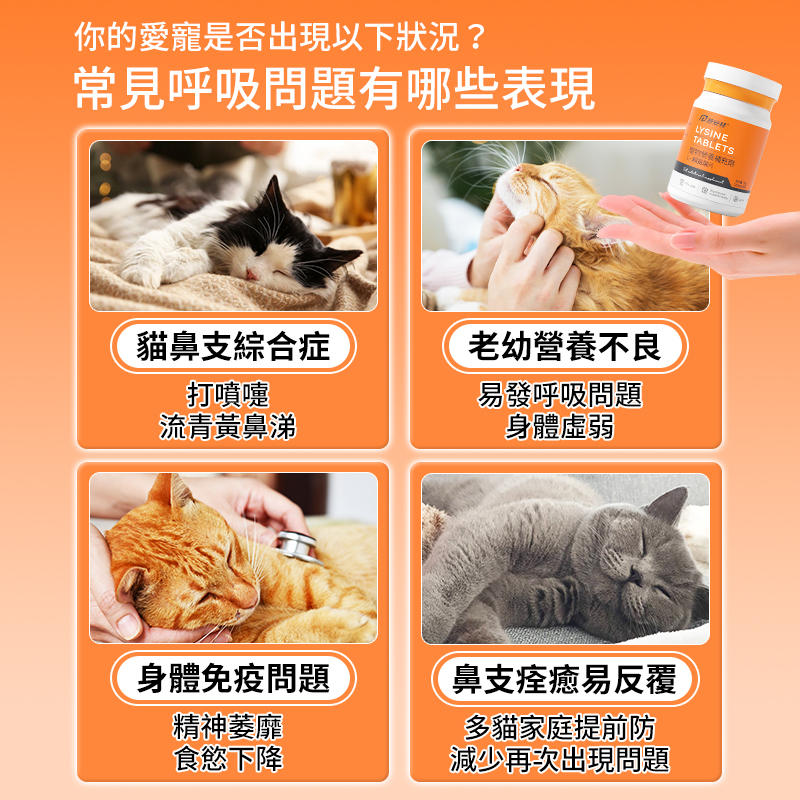 下降、身體虛弱、嘔吐等問題。 給貓咪補充賴氨酸可以幫助阻