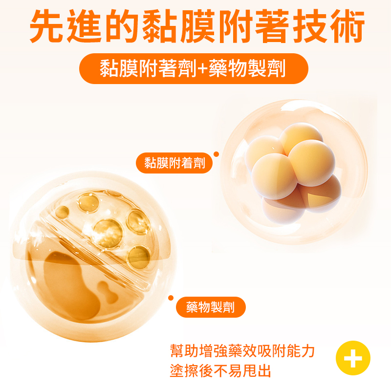 先進的黏膜粘附技術:軟膏使用黏膜粘合劑和藥物製劑,能增強藥效的吸附能力,塗抹後不容易被搖晃掉。
