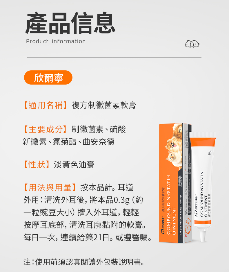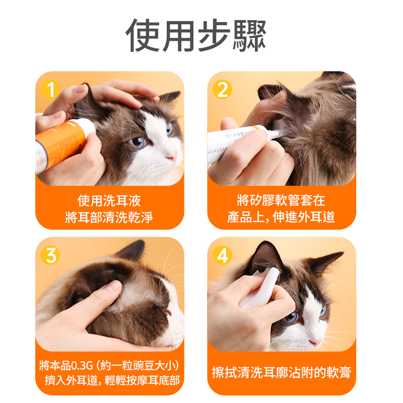 L字形設計:這款軟膏設計貼合貓狗的耳道,耳道較深,形似L字,能滲入耳道深處,覆蓋整個耳道,發揮更全面的抗真菌作用。