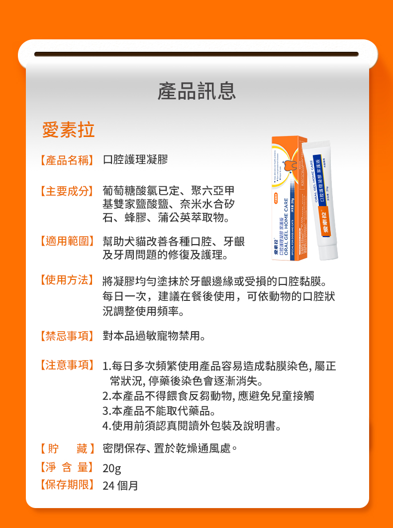 【適用範圍】幫助犬貓改善各種口腔、牙齦及牙周問题的修復及護理。