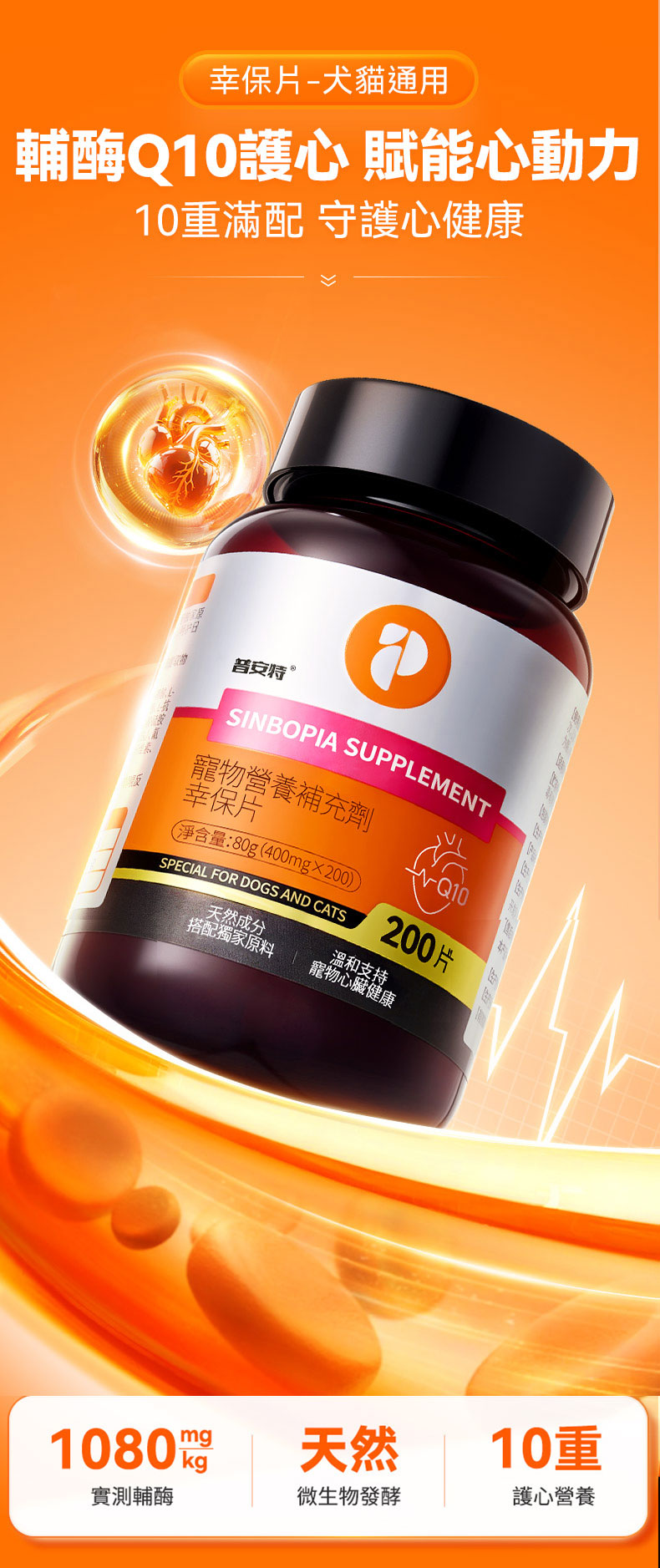 普安特幸保片|輔酶Q10心肌修護配方 專為貓咪狗狗設計 · 心臟肥大/喘咳/易疲勞的日常預防方案 獸醫推薦 · GMP認證 · 每日1粒溫和補充