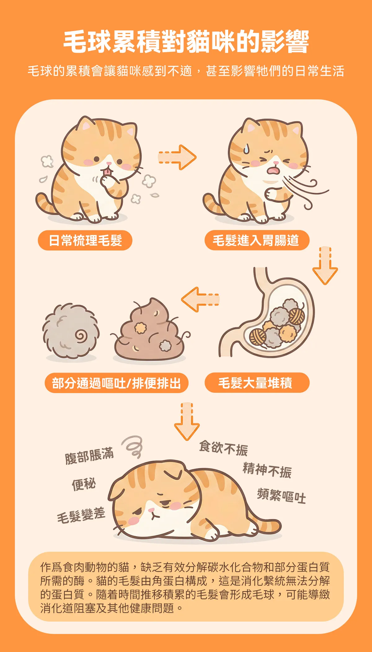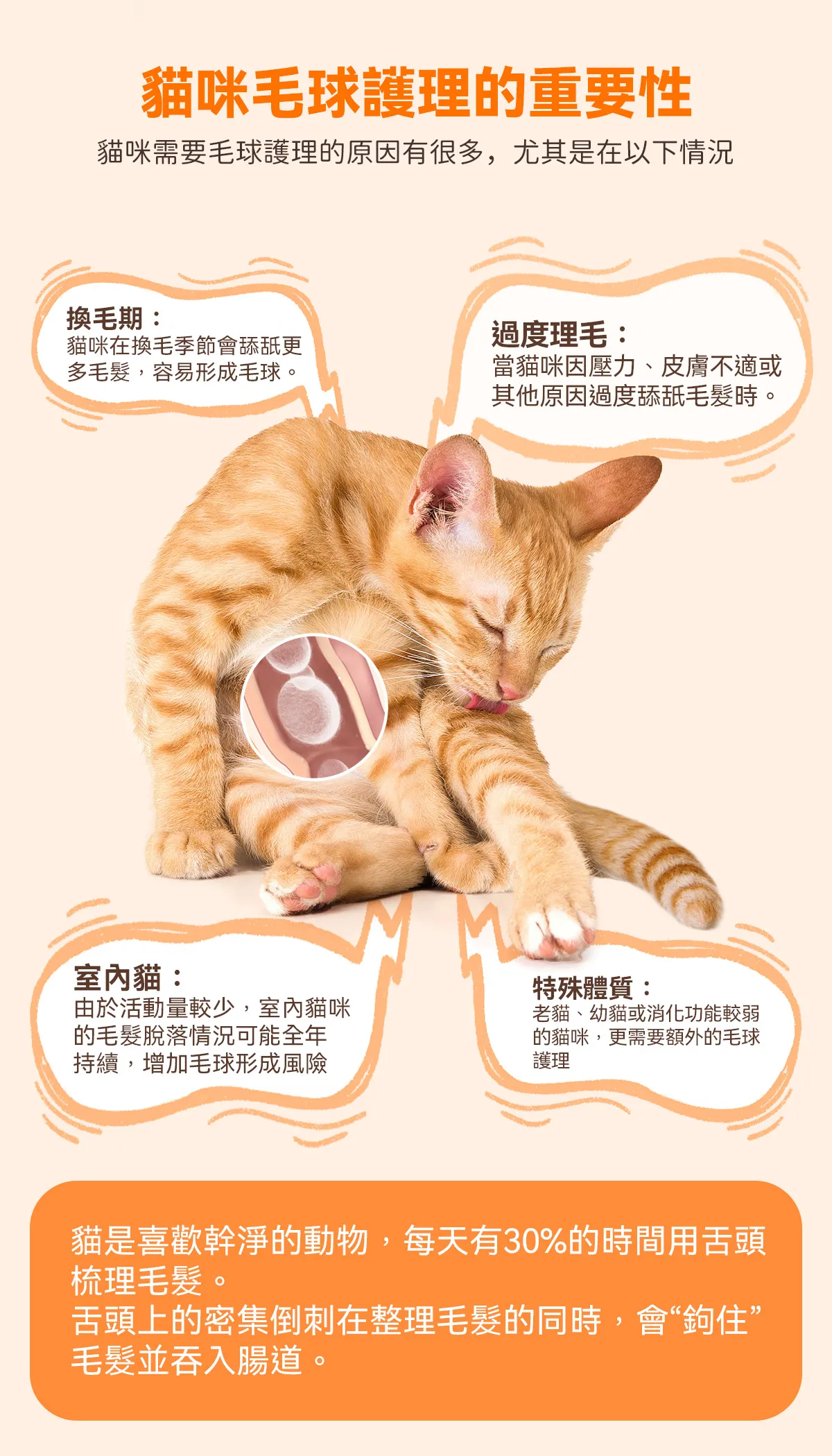 👉 可能是毛球累積影響腸胃健康