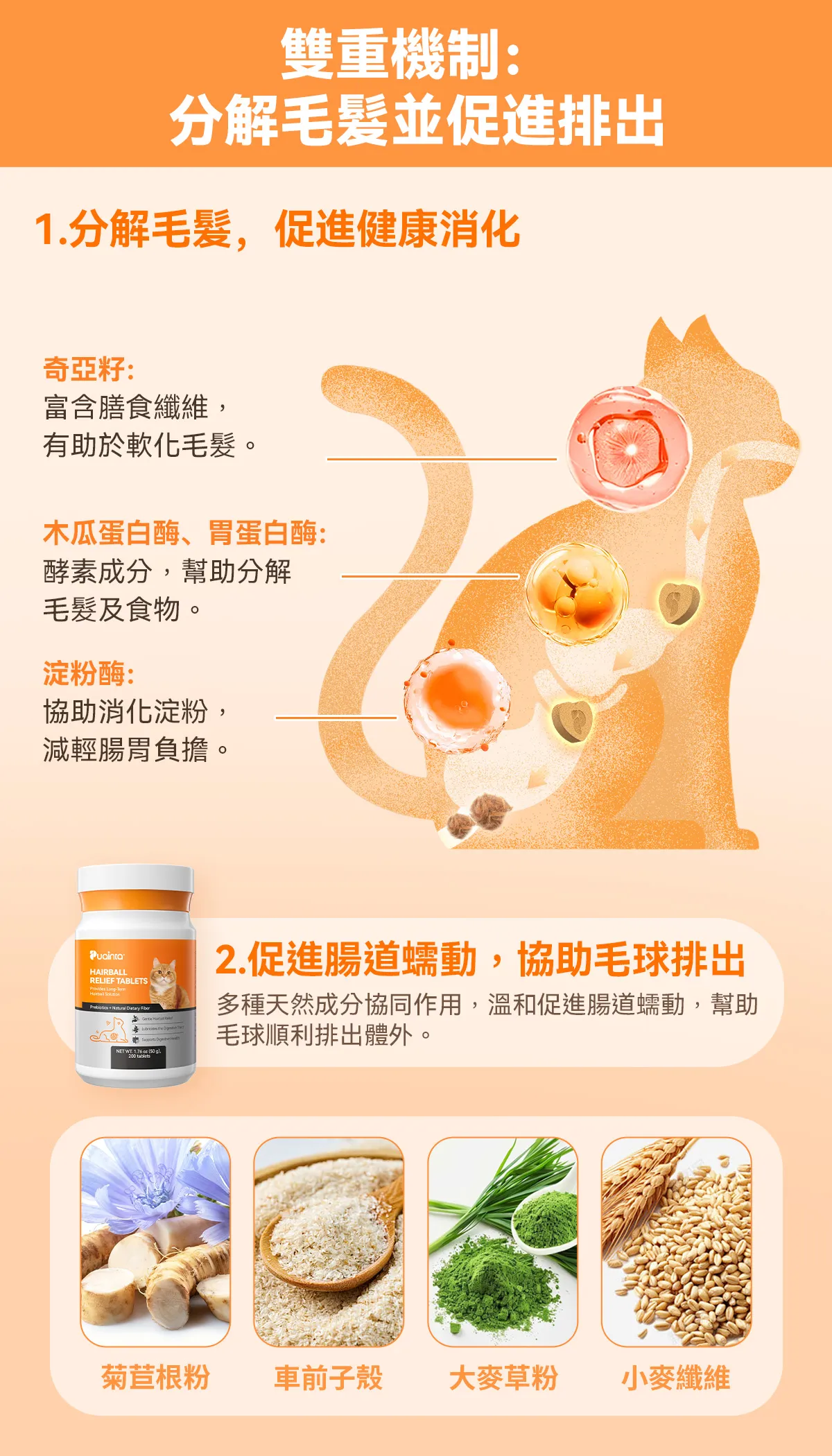 幫助順利排出毛球