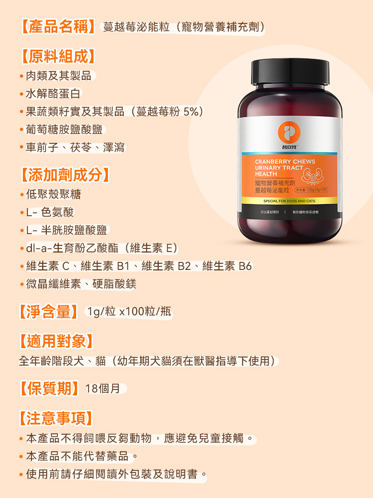 普安特蔓越莓泌能粒,寵物尿道營養補充劑