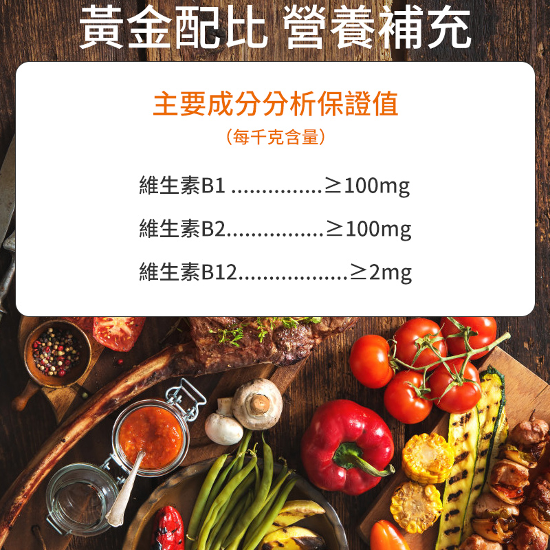 液體維生素 B 複合物含有一系列重要的 B 群維生素成分,包括維生素 B1、維生素 B2、維生素 B12 等。這些 B 群維生素不僅對您的狗狗的身體機能至關重要,還能促進能量代謝、神經系統健康以及良好的毛髮和皮膚狀況。